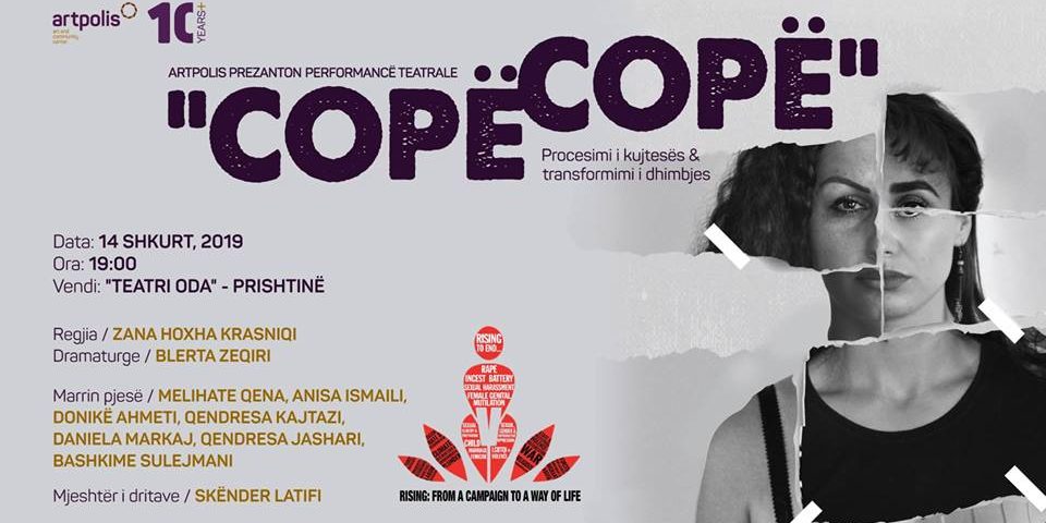Qendra për Art dhe Komunitet ‘Artpolis’, në kuadër të fushatës globale “Një miliard në këmbë”, në mbrojtje të të drejtave të grave dhe në mbështetje të fushatës bamirëse “Një ditë e Valentinit për të gjithë”, organizon shfaqjen teatrale “Copë Copë”.