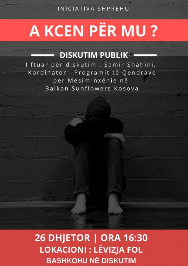 Me nismë të një grupi të të rinjve, të cilët kanë vullnet dhe vizion që përmes aktiviteteve të tyre të ndikojnë në vetëdijësimin e shoqërisë, më 26 dhjetor, në ora 16:30, në objektin e Lëvizjes Fol, do të mbahet një diskutim nga Samir Shahini, koordinator i Programit të Qendrave për mësim-nxënie në ‘Balkan Sunflowers Kosova’.…