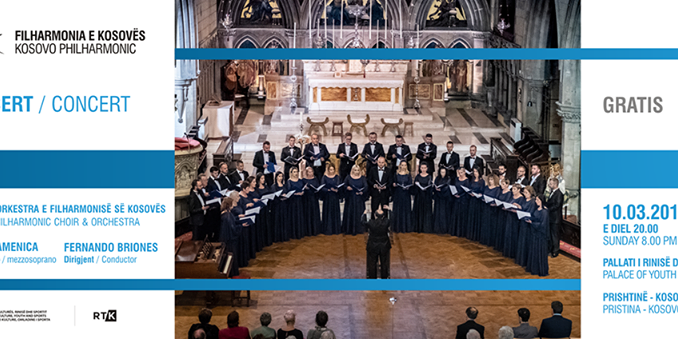 Të dielën (10 mars), në Pallatin e Rinisë dhe Sportit në Sallën e Kuqe, nga ora 20:00, do të mbahet koncert i Filharmonisë së Kosovës. Për të parë nga afër interpretimin e mezosopranes, Vikena Kamenica dhe dirigjentin, Feranando Brionest, ju mund të merrni bileta falas të cilat mund të tërhiqen me datat 7 dhe 8 mars 2019 nga ora 10:00 deri në orën 15:00, në objektin e Filharmonisë së Kosovës (Rr. Sulejman Vokshi Nr. 19 – prapa Ministrisë së Kulturës). Posedimi i biletës është i obligueshëm për hyrje në koncert. Një person mund të tërheq vetëm dy bileta.