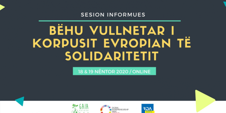 Me datat 18 dhe 19 nëntor, Organizata ‘GAIA Kosovo’, do të organizojë sesione informuese në lidhje me mundësitë e punës vullnetare në Evropë, nëpërmjet programit të Korpusit Evropian të Solidaritetit.