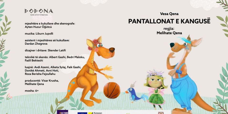 Nesër (15 shkurt) në skenën e teatrit të qytetit të Prishtinës, ‘Dodona’, do të zë vend shfaqja për fëmijë “Pantallonat e Kangusë”. Menaxheri i teatrit ‘Dodona’, Valedet Rama, në një prononcim për Radio KFOR-in tregon se çfarë trajton shfaqja: “Shfaqja e trajton problemin e ngacmimeve në mes të fëmijëve dhe mënyrën se si fëmijët e kuptojnë se kanë gabuar dhe pastaj kërkojnë falje për gabimin që e kanë bërë. Arsyeja më e madhe që fëmijët të vijnë për të parë këtë shfaqje bashkë me prindërit është të shohin se çfarë ndodhë në tregimin tonë, ku për personazhe janë përzgjedhur të jenë kangurët, të cilët e tregojnë tregimin dhe në një formë na tregojnë se si duhet të sillemi duke na bërë me dije se ne nganjëherë ngutemi me shokët po pastaj e kuptojmë gabimin dhe kërkojmë falje në mënyrë që ta kthejmë shoqërinë në vendin si ka qenë.”
