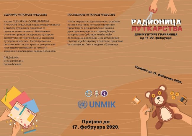 Amatersko pozorište „Janićije Popović“ iz Gračanice organizovaće lutkarsku radionicu, kako bi deci školskog uzrasta omogućili da steknu teorijska i praktična znanja neophodna za rad u lutkarskoj pozorišnoj umetnosti. Budući da su deca pokazala veliko interesovanje za lutkarsku predstavu koju su izveli glumci ovog pozorišta, Dom kulture Gračanica organizuje radionice da bi deci približili ovaj vid…